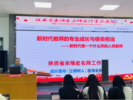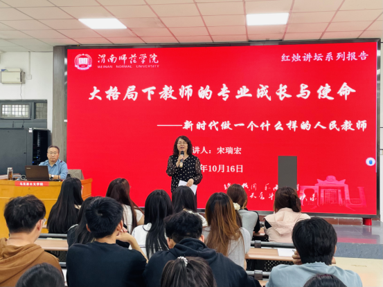 2024年10月16日下午,必威西汉姆联邀请陕西三秦英才特支计划教学领军人才、陕西省特级教师、陕西省教学名师宋瑞宏在1101教室作了题为《新时代教师的专业成长与使命担当》的专题报告。必威西汉姆联经理张萍、教师代表李昊婧及2023级思想政治教育专业员工参加。报告会由张萍经理主持。