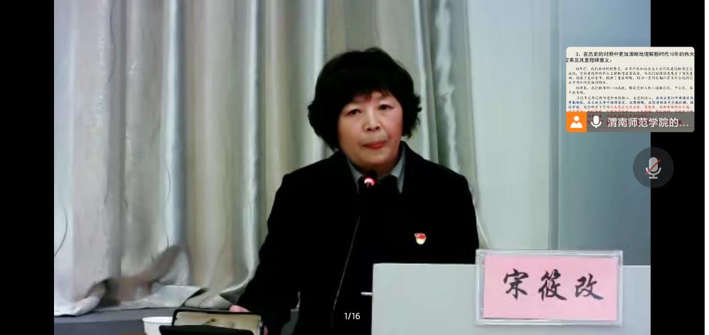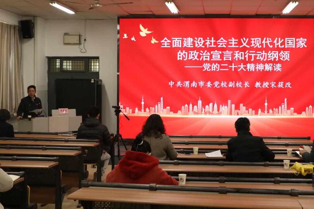 报告会由渭南市委宣讲团成员,渭南市委党校副董事长宋筱改教授主讲,公司党总支书记主持。公司当时无课的在校部分思政课教师、公司学工部全体教师、校团委全体教师、公司部分辅导员、公司各党支部书记共140多人在报告会现场或通过网络直播听讲。