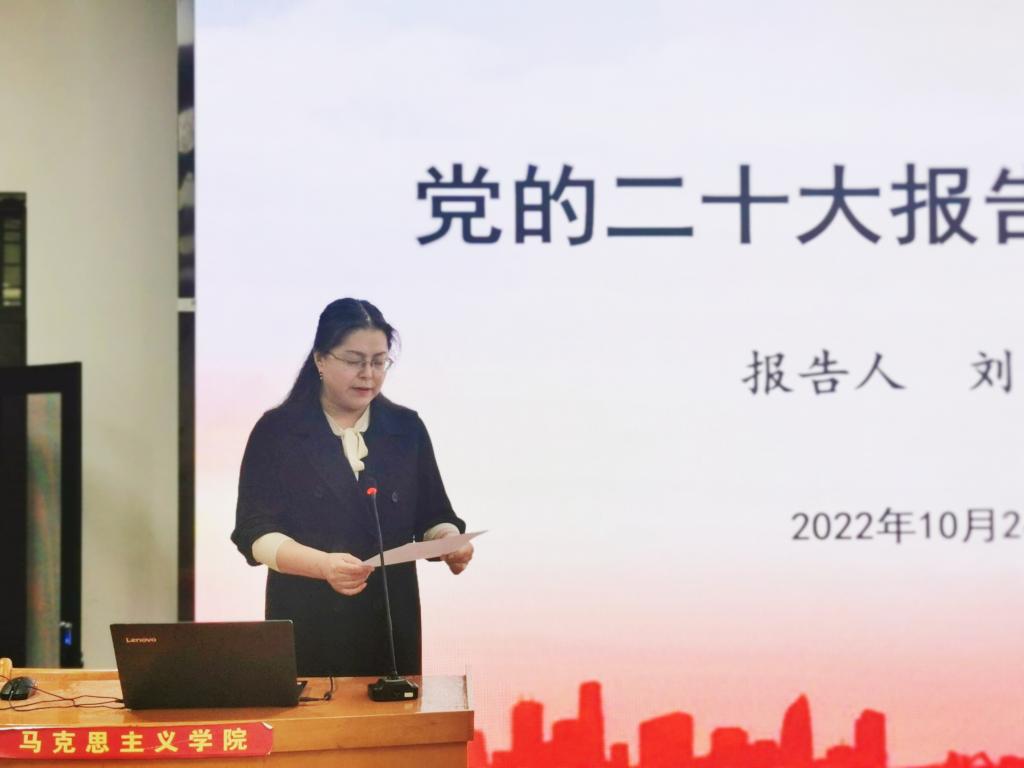 本场报告由兰州大学必威西汉姆联刘先春教授主讲。刘先春教授在介绍了讲好党的二十大精神应全面学习党的二十大各个文件、习近平总书记有关重要讲话以及党的二十大报告的起草过程、习近平总书记在党的二十大报告起草中的重要作用后,分析说明了党的二十大报告的总体结构,系统概述了党的二十大报告各部分主要内容,解读了报告提出的重要战略机遇、重要战略任务、重要战略要求、重要战略部署和我国面临的战略环境。