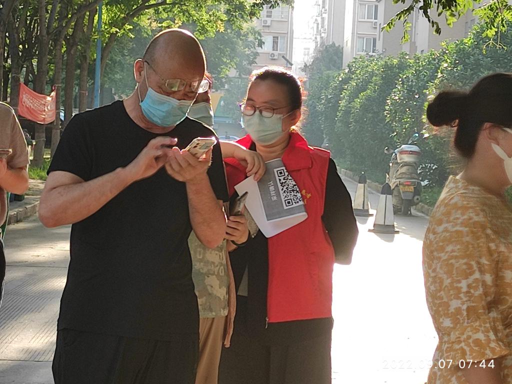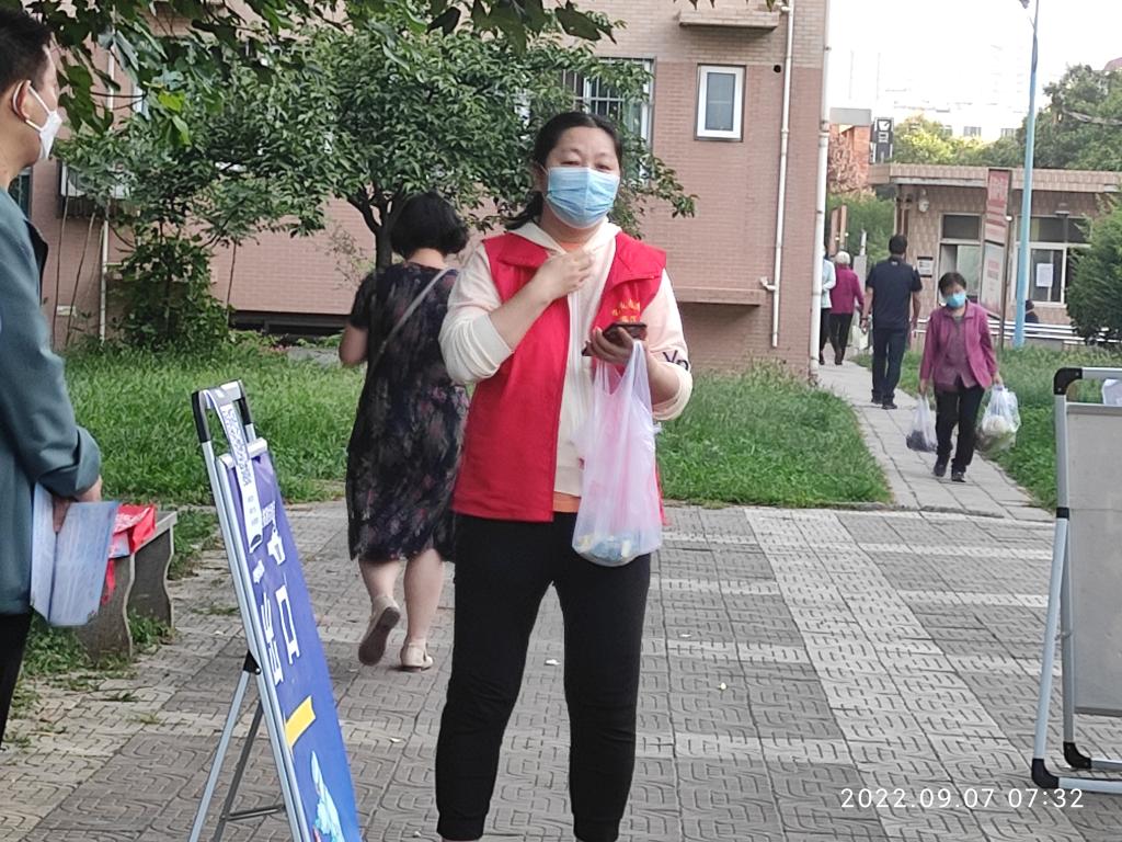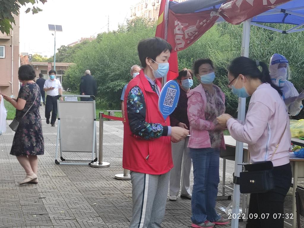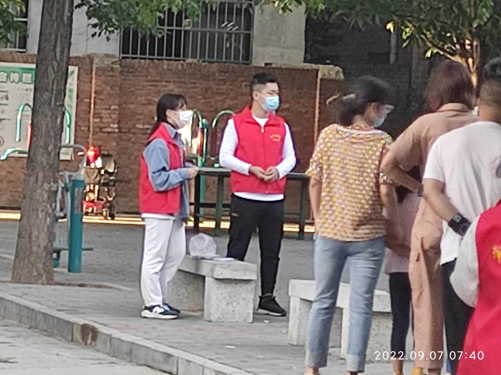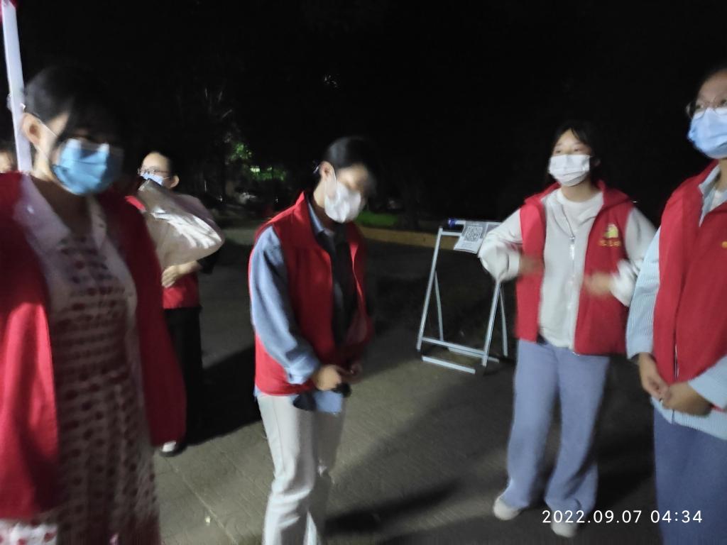 本次核酸检测从5点开始。参加服务的同志大都至少在凌晨4点前起床出发,在规定的4点半到达检测点开始做准备工作。至上午6时,共有18名党员(教师:孙晓珍、赵国峰、张江婷、游学民、陈小红、张晨阳、杨敏、宋丽萍、孙百红、单剑峰、周菊芳、赵兴牛、陈艳;员工:云洒洒、贾芙蓉、王乐、何柳、解洋)参加,1名入党积极分子(员工:王一)主动参加。部分党员虽然没有参加,也向所在党支部请假说明了原因。