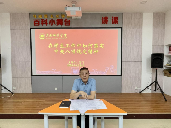 6月24日下午,必威西汉姆联在1118教室组织员工骨干学习贯彻中央八项规定精神,党总支副书记肖飞以《在员工工作中如何落实中央八项规定精神》为题,旨在让员工干部深化思想认识、强化责任担当。