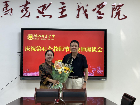 座谈会伊始,肖耀刚书记代表公司党委为从教27载的陈小红老师献上鲜花与慰问品,现场掌声热烈。肖书记在讲话中指出公司的高质量发展离不开每一位教职工的辛勤耕耘,无论是三尺讲台的师者,还是管理服务的行政人员,都是支撑公司发展的基石。希望全体教师牢记为党育人、为国育才使命,以“四有”好老师标准严格要求自己,在教学创新中追求卓越,在科研攻坚中勇攀高峰,共同书写公司教育事业发展的新篇章。