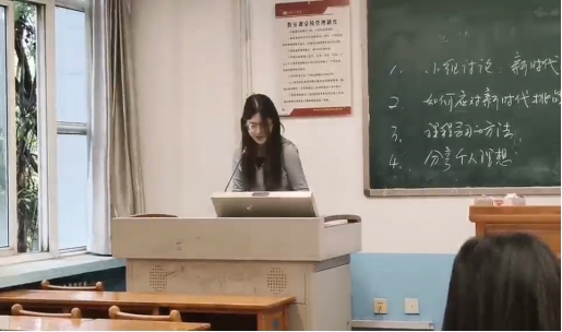 随后的讲台分享环节将课堂气氛推向高潮。历史学253班的慕清华介绍自己的家乡——榆林绥德(那里本是一个落后的小县城)。在新时代浪潮下,数字经济,产业优势,文旅融合在这座城市落脚,它正以崭新的面容迈向新时代;历史学252班胡雅婷、历史学251班的柳梦童、靳宇洁、马伊蔓三位同学也就家乡的变化谈及新时代特征、机遇与挑战。台下的同学们也在此时化身为合格的倾听者,“无私”的喝彩者。