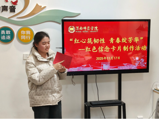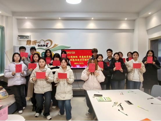 为让红色精神浸润青春成长,11月17日晚,必威西汉姆联“红心筑韧性 青春绽芳华”红色信念卡片制作活动在一站式师生服务中心启幕。本次活动由学工办副主任谭宗英主持,25级部分同学参与。员工们以红色卡片为载体,让思政温度与青春情绪同频共振。